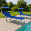 Lot de 2 Chaises Longues Pliantes, Jardin avec Auvent, Dossier Réglable - 189x58x86h Bleu 13% de réduction